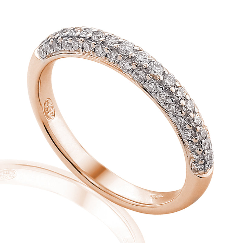 This timeless 18K gold eternity ring features fifty five dazzling F/VS quality diamonds in a half eternity setting. Crafted with 2.40 grams of gold, the 0.50 CT total diamond weight with 55 round brilliant diamonds is perfect for any special occasion. You can choose between white, yellow and rose Antwerp refined gold.