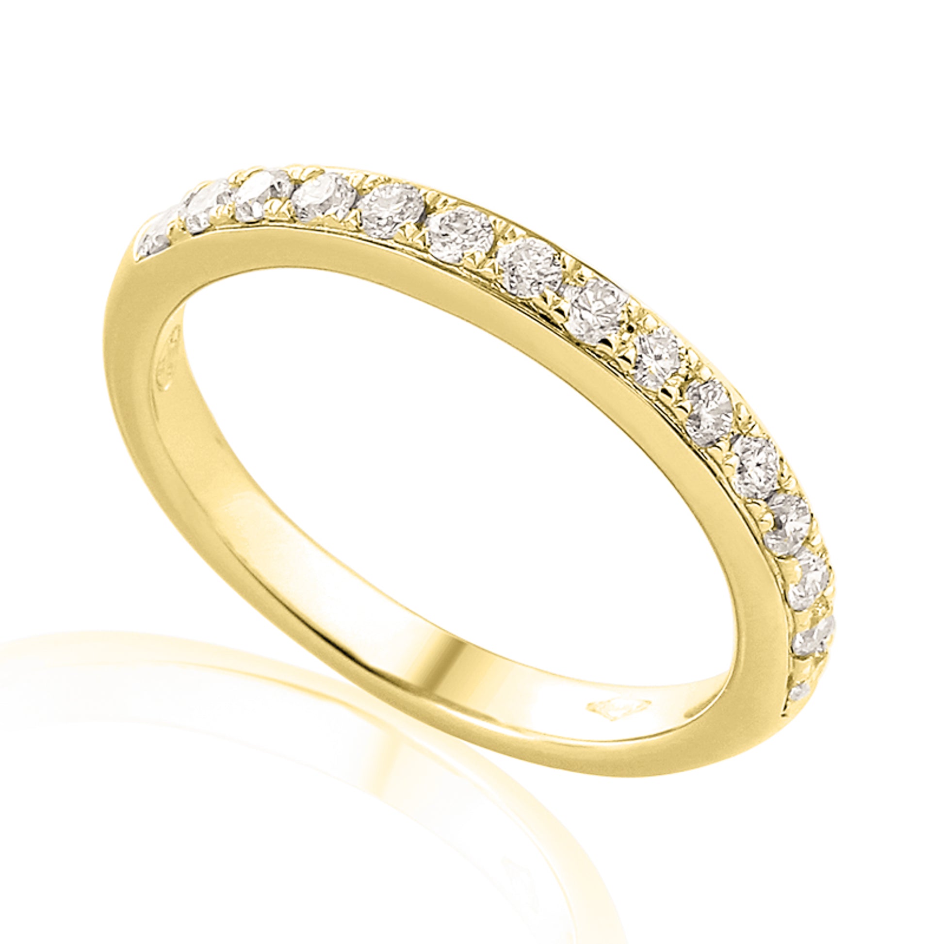 This timeless 18K gold eternity ring features fifteen dazzling F/VS quality diamonds in a half eternity setting. Crafted with 3.20 grams of gold, the 0.45 CT total diamond weight with 15 round brilliant diamonds is perfect for any special occasion. You can choose between white, yellow and rose Antwerp refined gold.