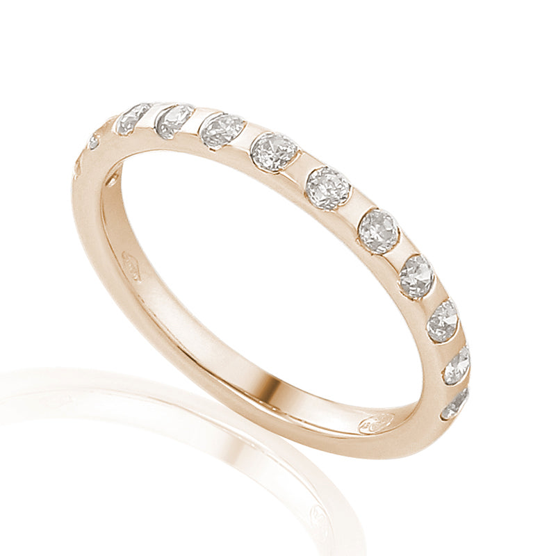 This timeless 18K gold eternity ring features twelve dazzling F/VS quality diamonds in a half eternity setting. Crafted with 2.50 grams of gold, the 0.41 CT total diamond weight with 12 round brilliant diamonds is perfect for any special occasion. You can choose between white, yellow and rose Antwerp refined gold.