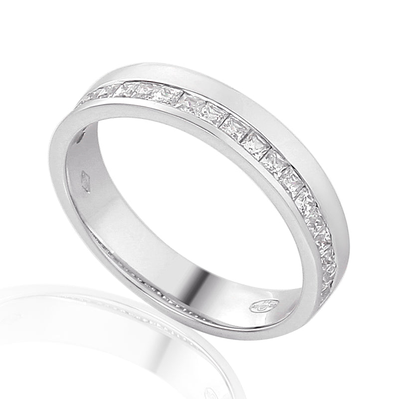 This timeless 18K gold eternity ring features twenty dazzling F/VS quality diamonds in a half eternity setting. Crafted with 4.10 grams of gold, the 0.50 CT total diamond weight with 20 princess cut diamonds is perfect for any special occasion. You can choose between white, yellow and rose Antwerp refined gold.