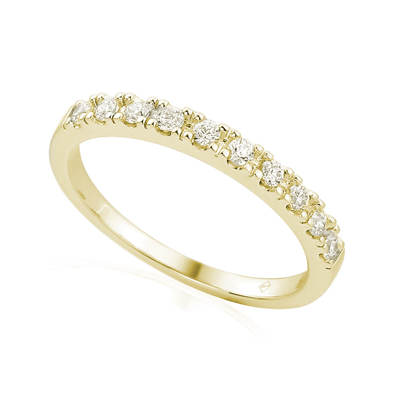 This timeless 18K gold eternity ring features ten dazzling F/VS quality diamonds in a half eternity setting. Crafted with 2.30 grams of gold, the 0.25 CT total diamond weight with 10 round brilliant diamonds is perfect for any special occasion. You can choose between white, yellow and rose Antwerp refined gold.
